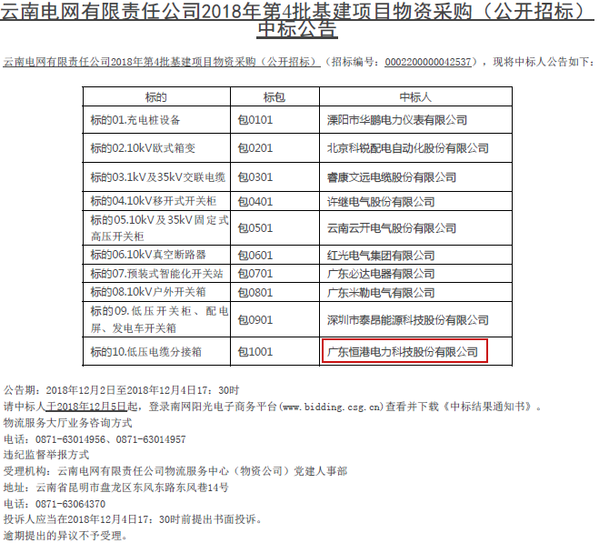 熱烈祝賀我司在云南電網(wǎng)有限責(zé)任公司2018年第4批基建項(xiàng)目物資采購中標(biāo)